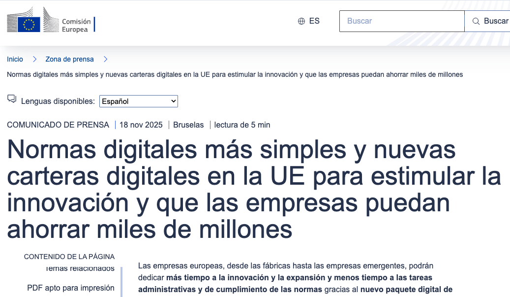 Fuente: Comisión Europea – Paquete Digital Ómnibus, febrero 2024